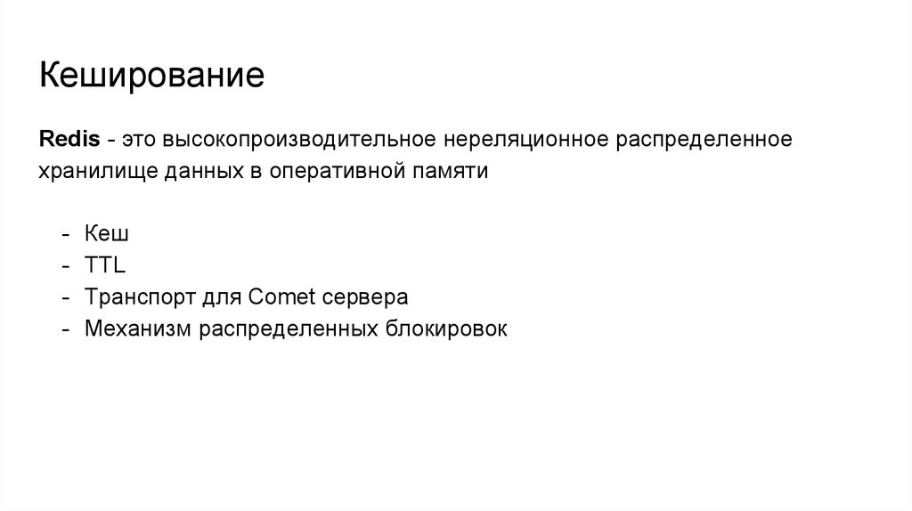 КешированиеRedis - это высокопроизводительное нереляционное распределенное