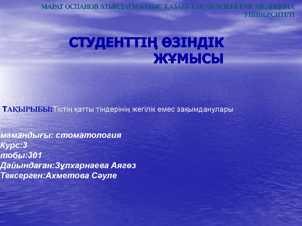 Тістің қатты тіндерінің жегілік емес зақымданулары мамандығы: стоматология