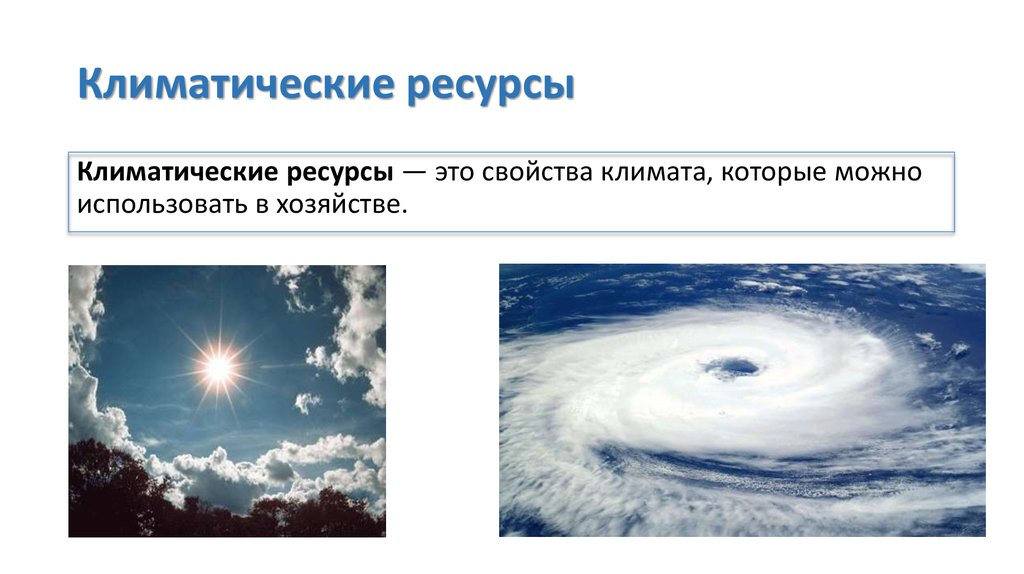 Виды климатических ресурсовКлиматические ресурсы