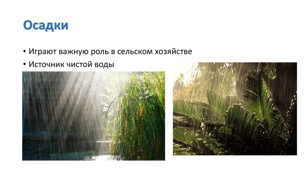 Осадки• Играют важную роль в сельском хозяйстве