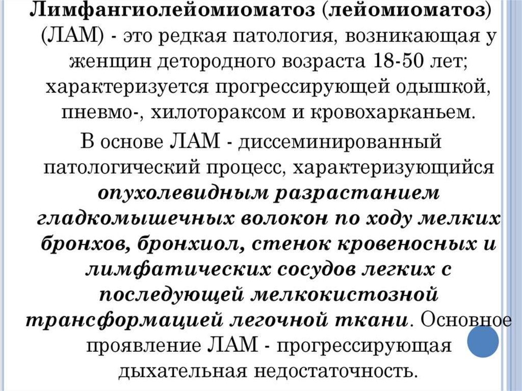 Тема: Лимфангиолейомиоматоз.