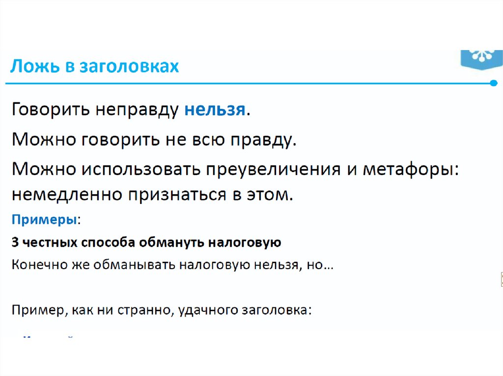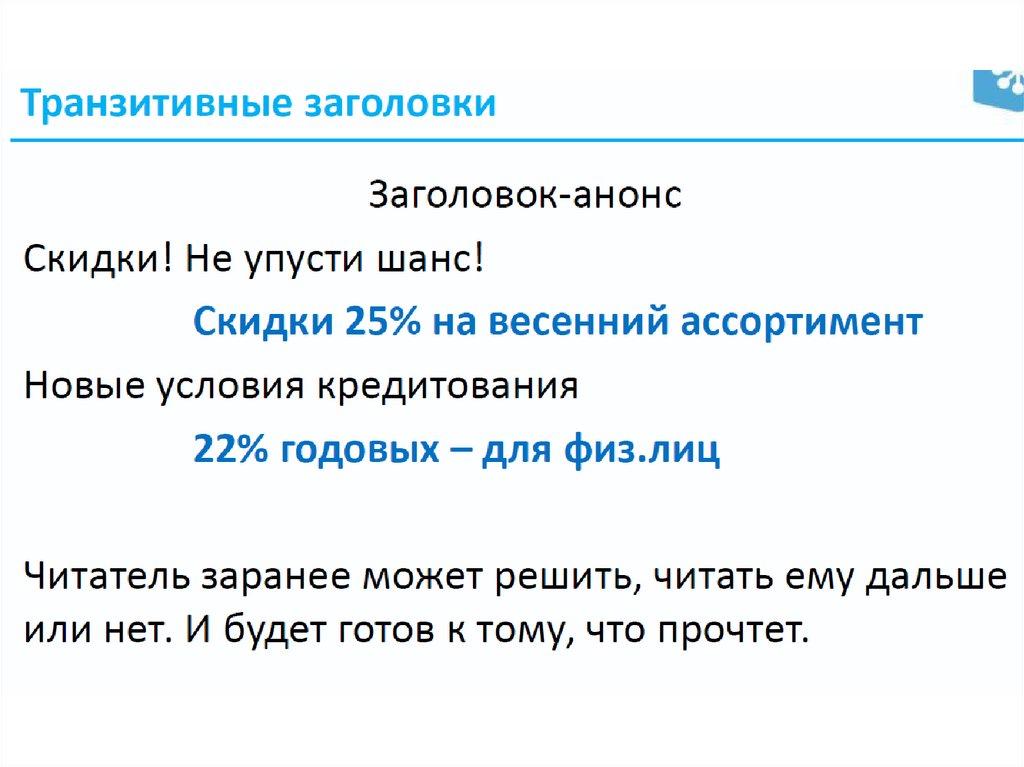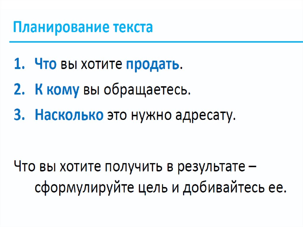 • Текст должен быть "легким". Большеразговорной речи. Попробуйте создать