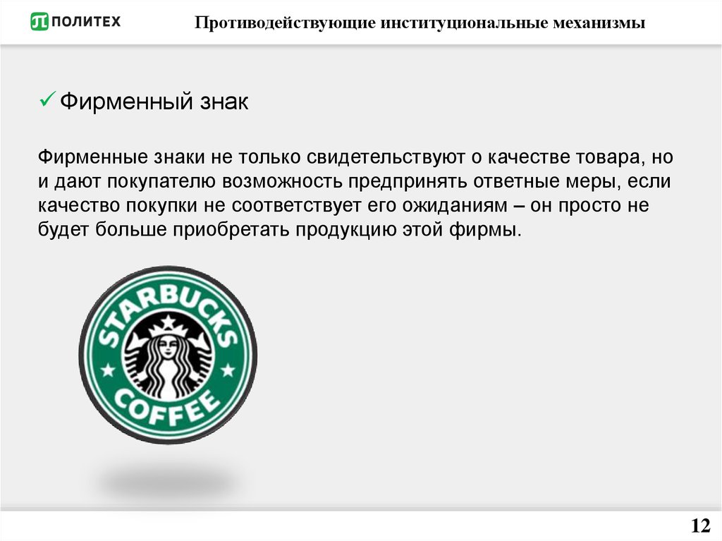 Противодействующие институциональные механизмыФирменный знак