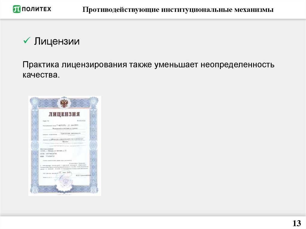 Противодействующие институциональные механизмыЛицензии