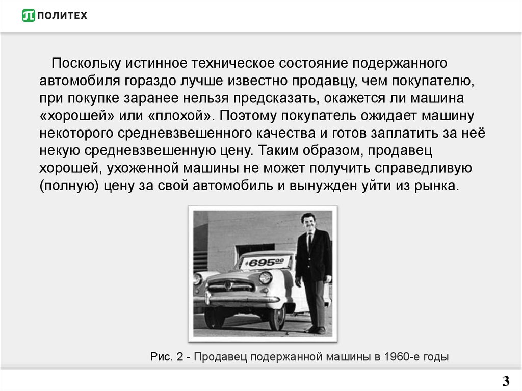 Рис. 2 - Продавец подержанной машины в 1960-е годы