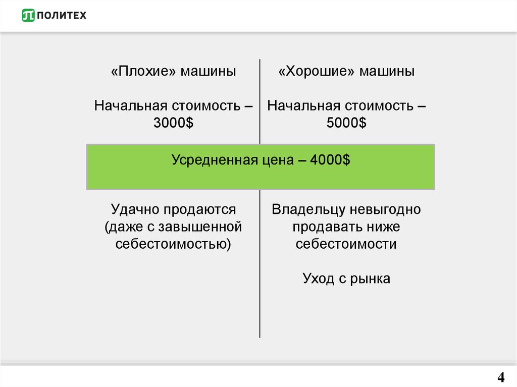(полную) цену за свой автомобиль и вынужден уйти из рынка.