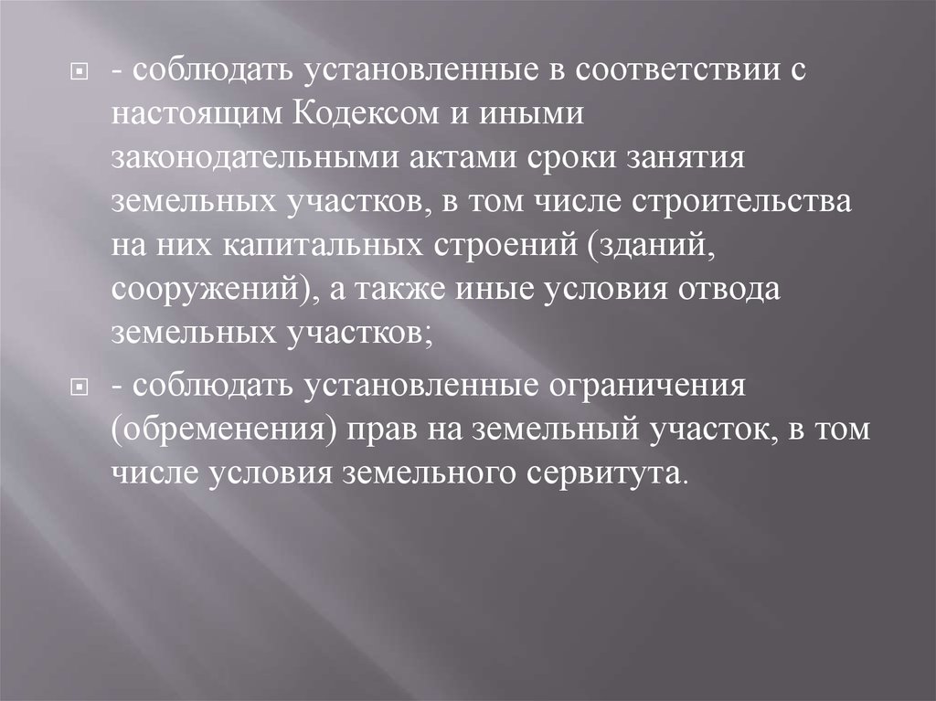 - не нарушать права иных землепользователей;- своевременно вносить плату за пользование