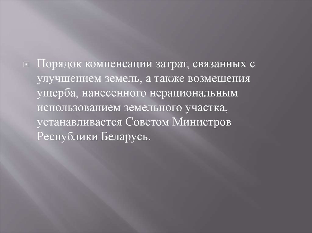 Порядок компенсации затрат, связанных сулучшением земель, а также возмещения
