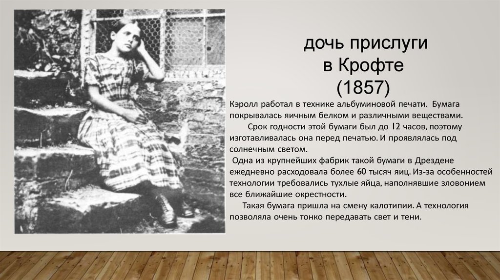 Кэролл работал в технике альбуминовой печати. Бумага