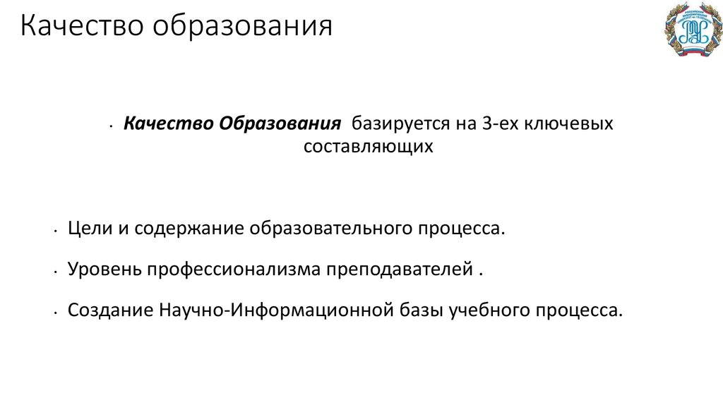 Качество образованияКачество Образования базируется на 3-ех ключевых