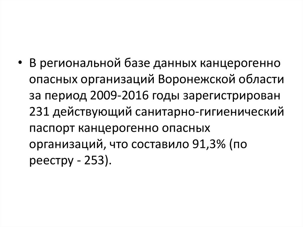 • В региональной базе данных канцерогенноопасных организаций Воронежской области