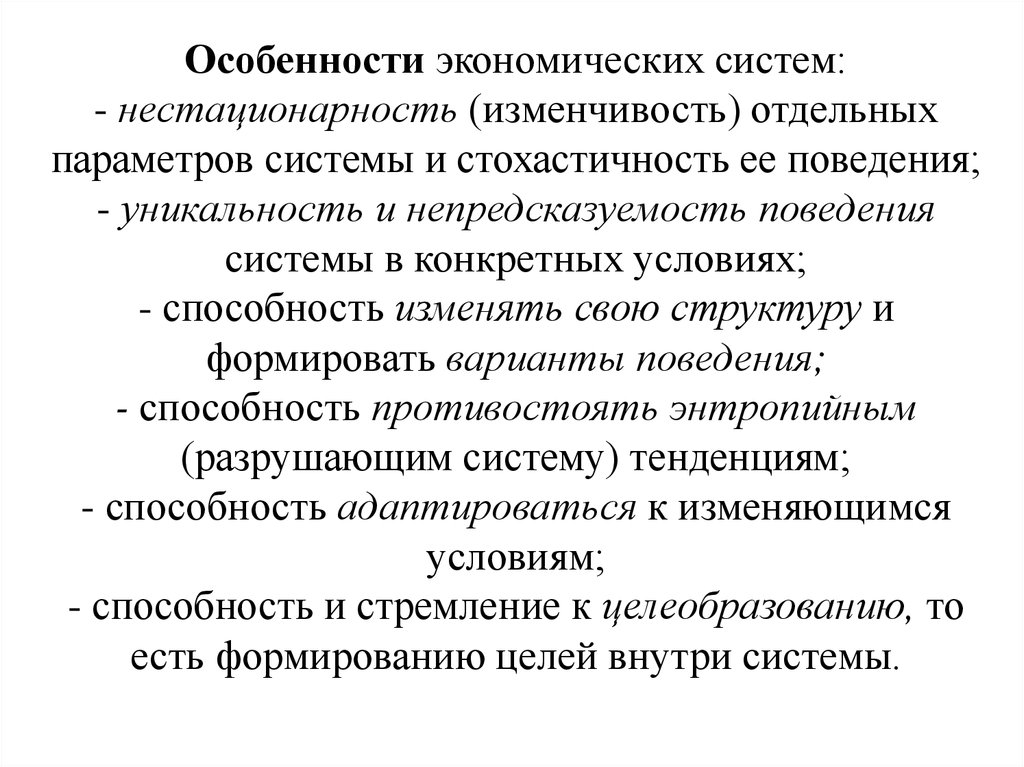 Особенности экономических систем:- нестационарность (изменчивость) отдельных