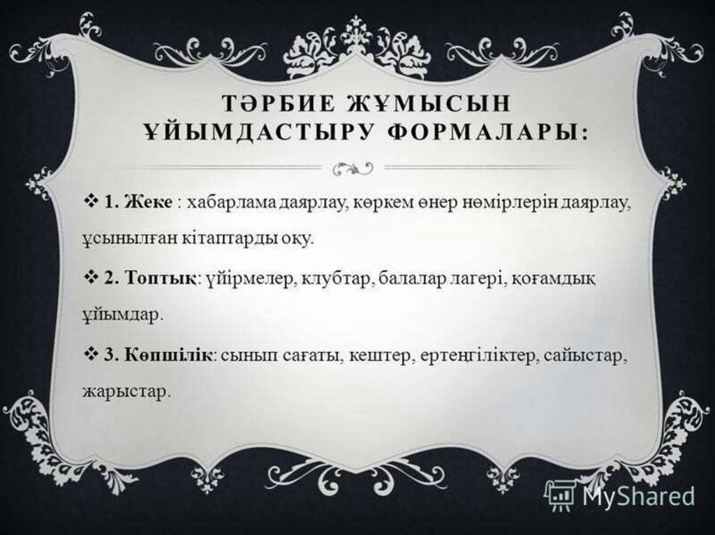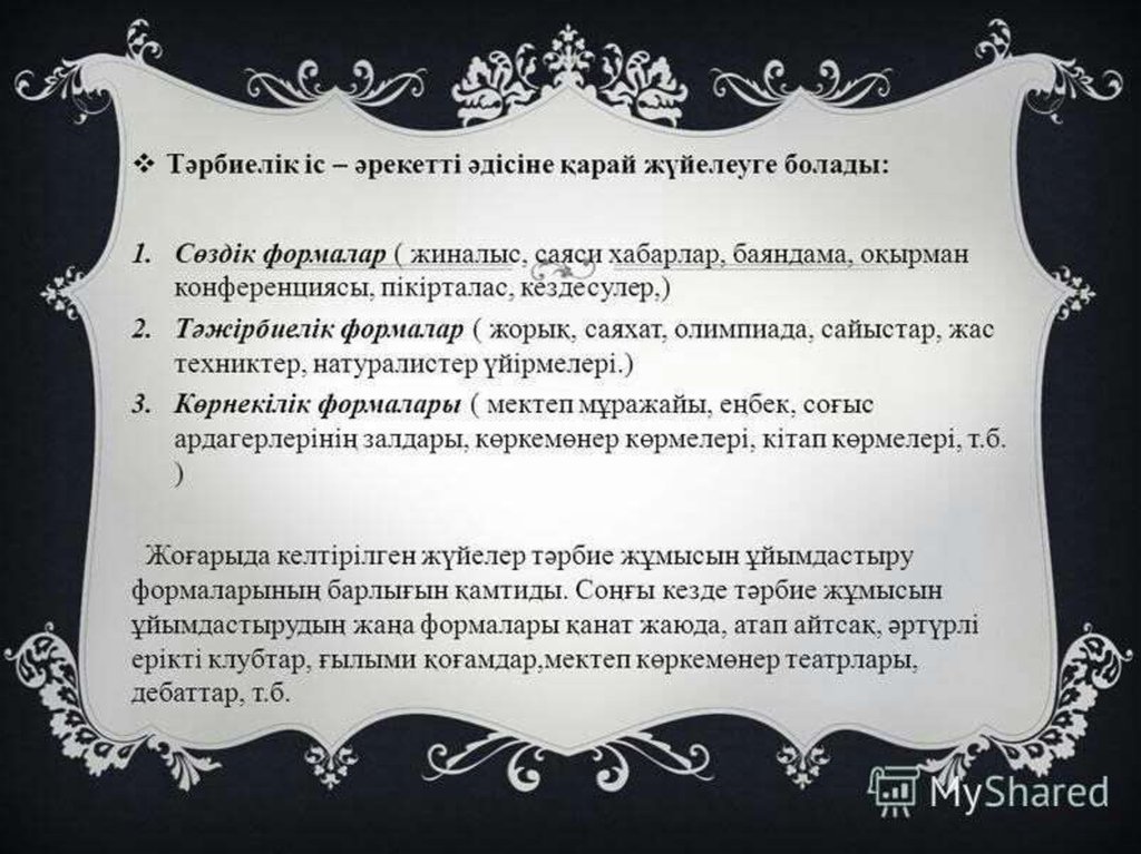 Тәрбие үдiстері, түрлері, ұйымдастыру формалары. Оқушылар ұйымдастыру жолдары