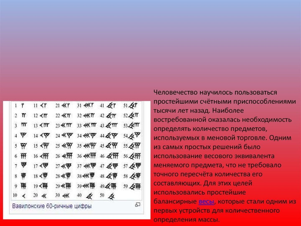 Человечество научилось пользоватьсяпростейшими счётными приспособлениями