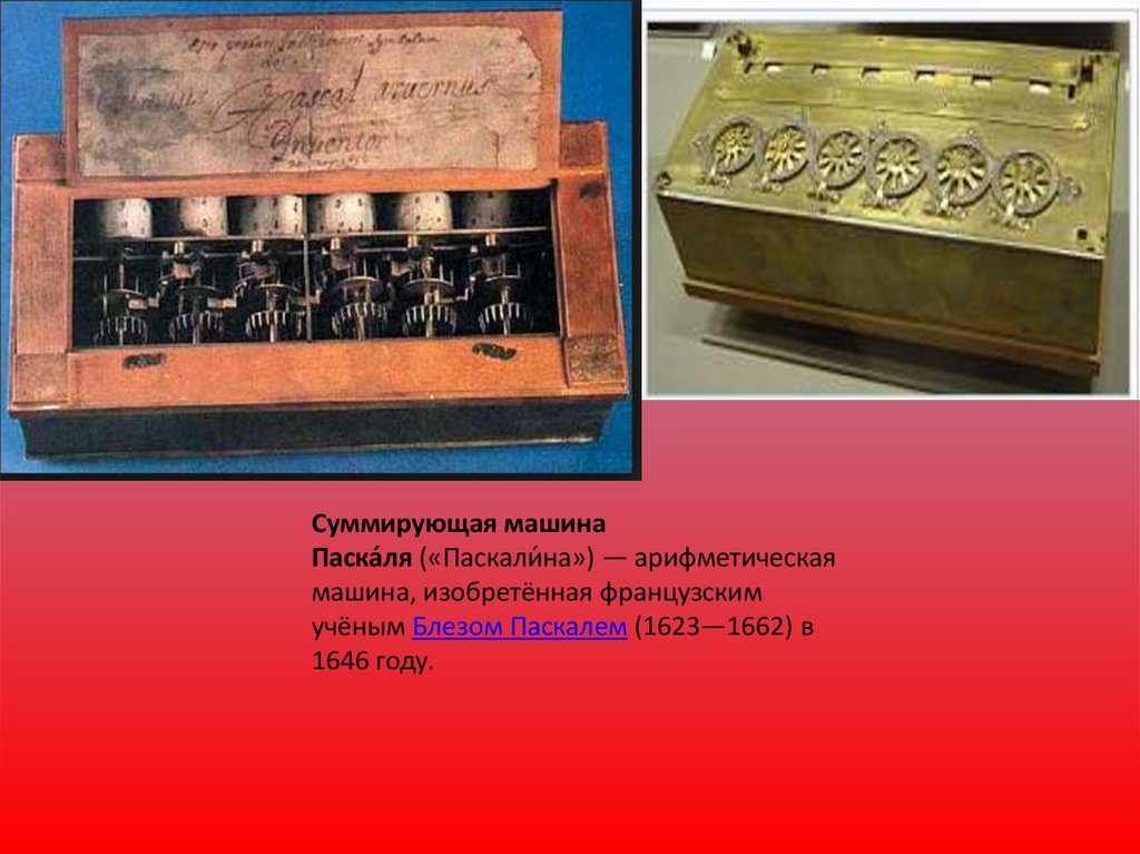 Суммирующая машинаПаска́ля («Паскали́ на») — арифметическая