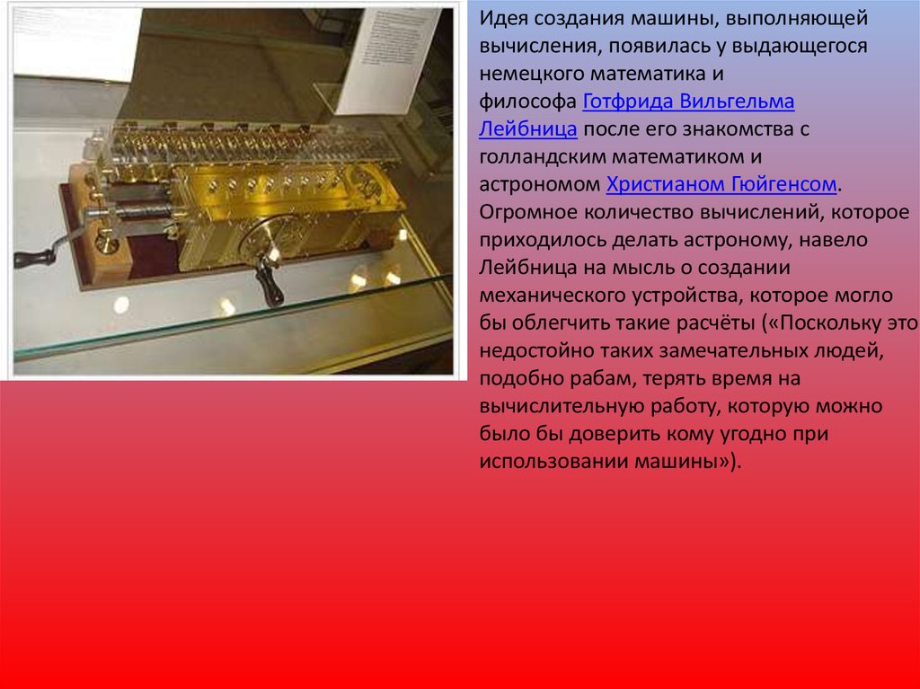 Идея создания машины, выполняющейвычисления, появилась у выдающегося