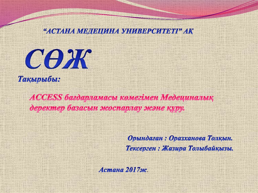 Access бағдарламасы көмегімен Медециналык деректер базасын жоспарлау және құру