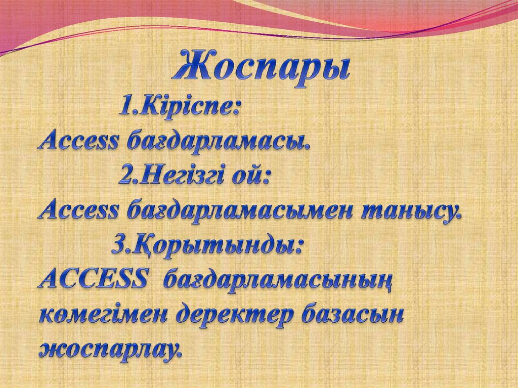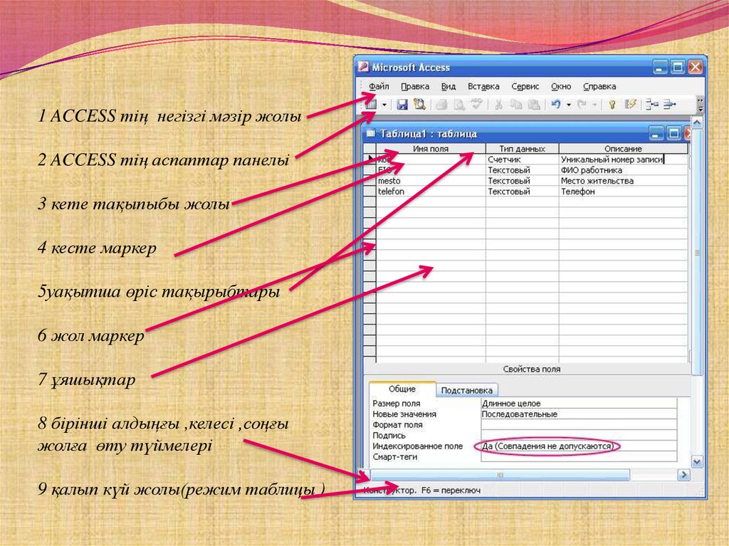 1 ACCESS тің негізгі мәзір жолы2 ACCESS тің аспаптар панельі