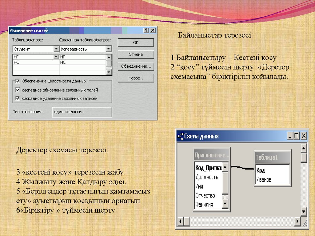 Байланыстар терезесі.1 Байланыстыру – Кестені қосу