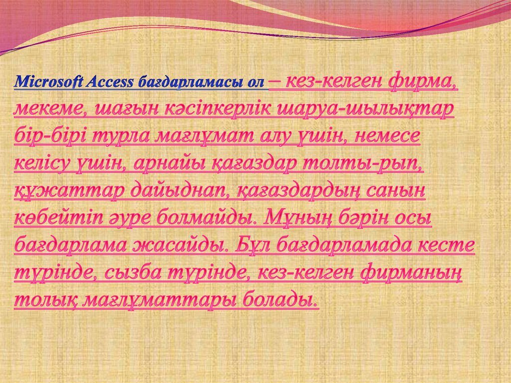 Оның шежіресіне көз жүгіртетін болсақ :1995 Access 7 (Windows 95 үшін MS Office 95
