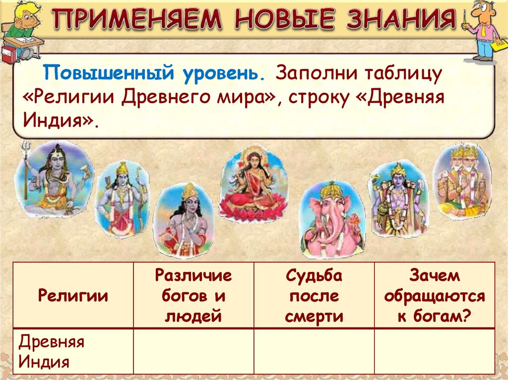 Повышенный уровень. Заполни таблицу«Религии Древнего мира», строку «Древняя