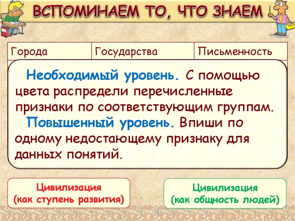 Необходимый уровень. Запиши в таблицу