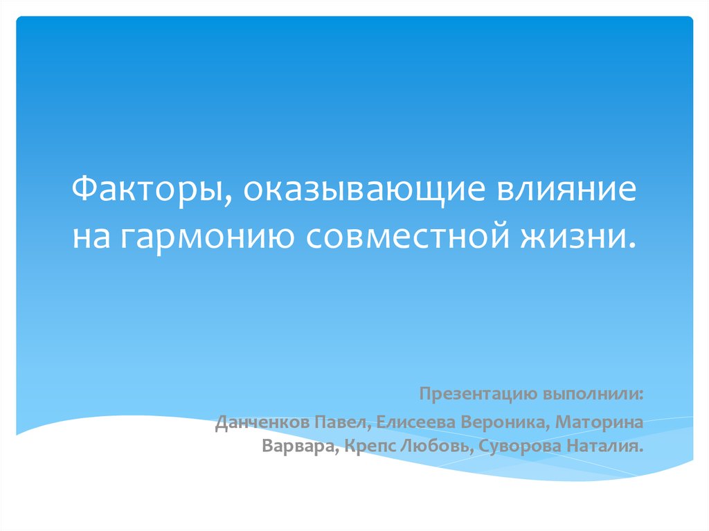 Факторы, оказывающие влияние на гармонию совместной жизни