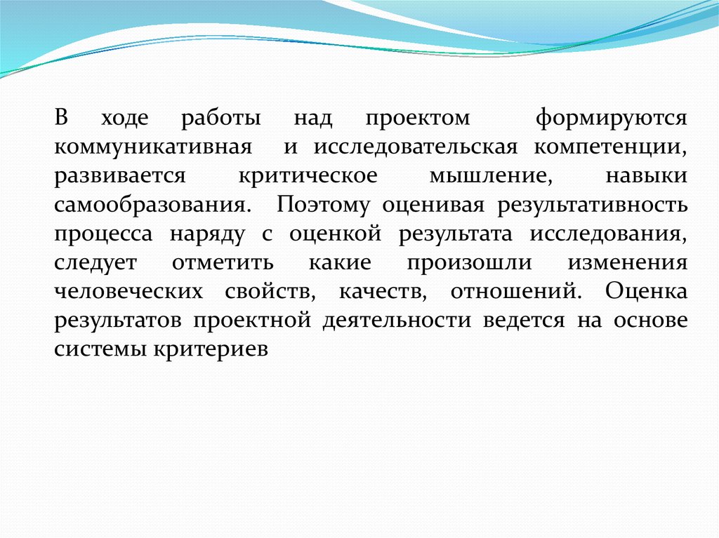 Результатом проектной деятельности становитсяпроект, интегрирующий полученные знания.