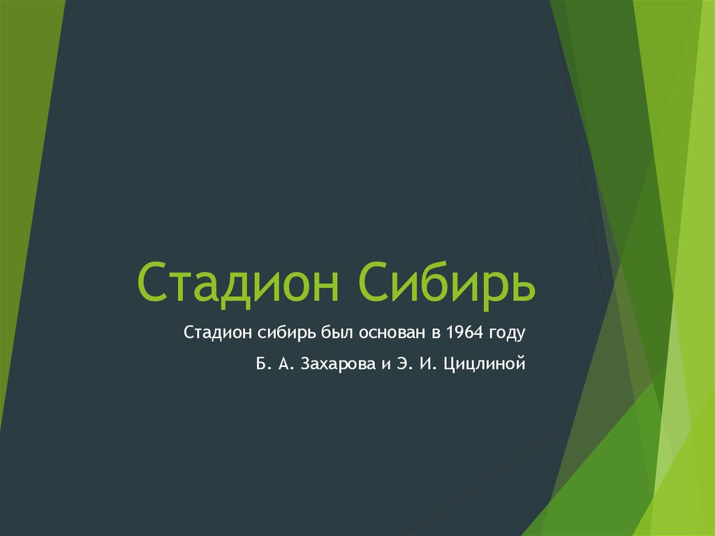 Стадион сибирь был основан в 1964 годуБ. А. Захарова и Э. И. Цицлиной