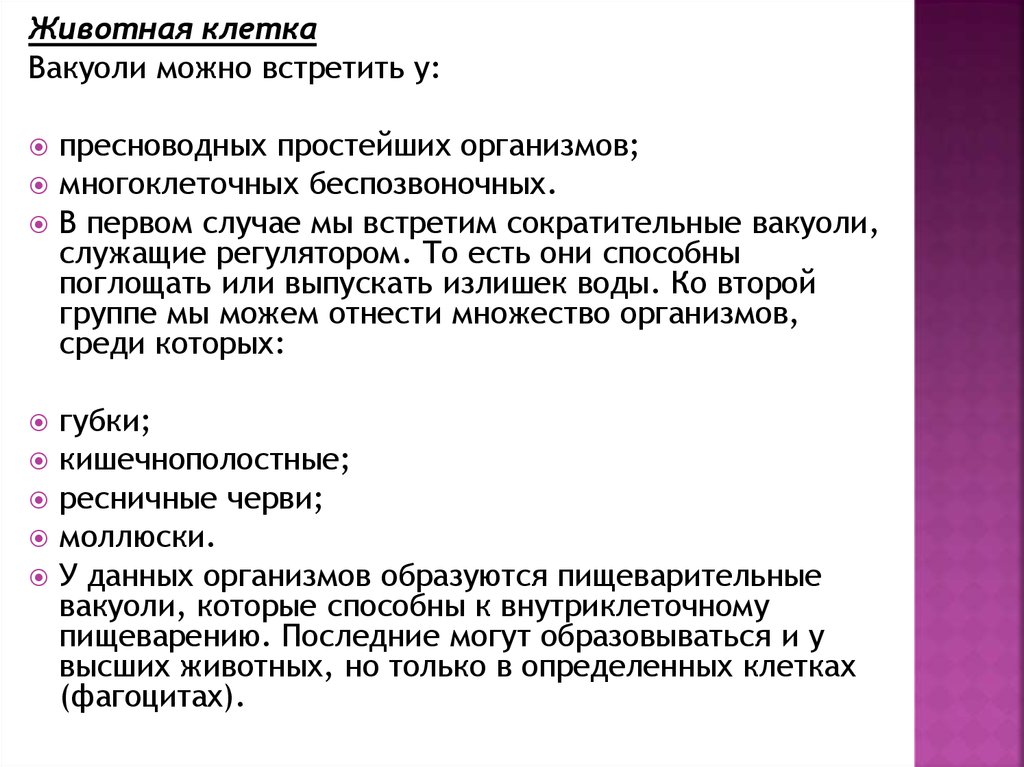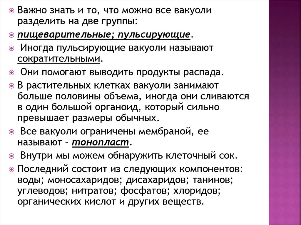 Важно знать и то, что можно все вакуолиразделить на две группы: