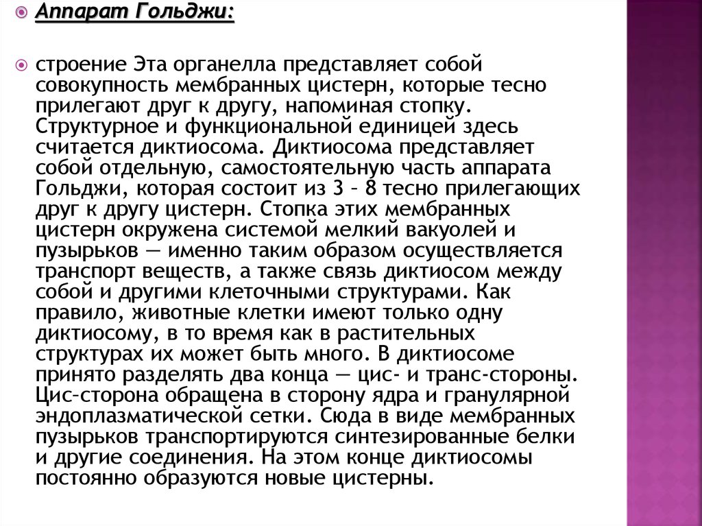 Гольджи, которая состоит из 3 – 8 тесно прилегающих