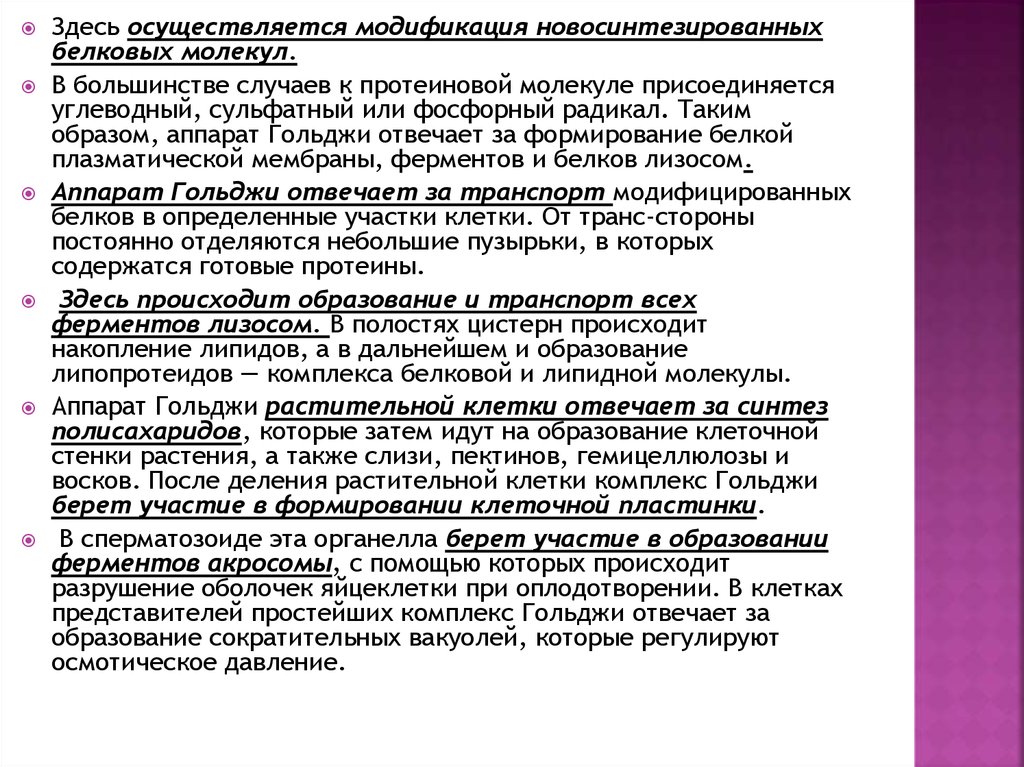 Аппарат Гольджи отвечает за транспорт модифицированных