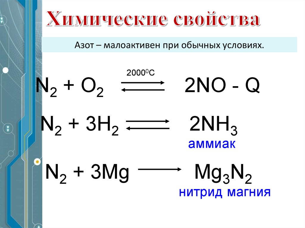 Азот – малоактивен при обычных условиях.N 2 + O2