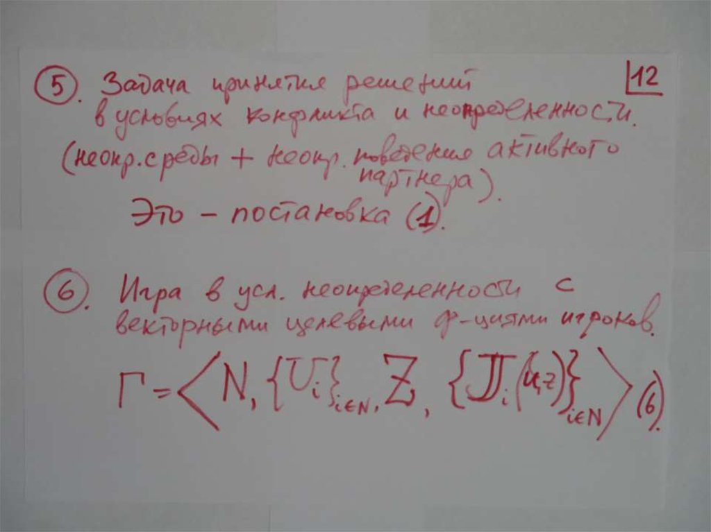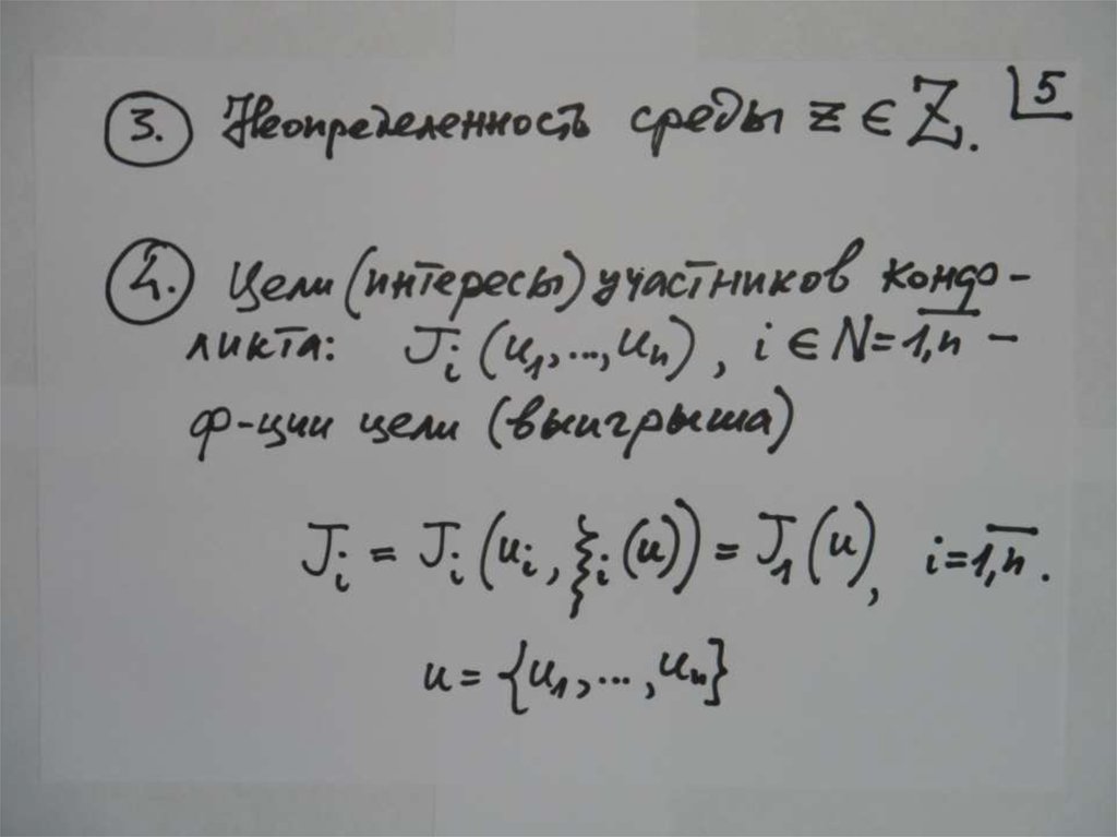 Теория игр – математическая теория принятия решений вусловиях конфликта.