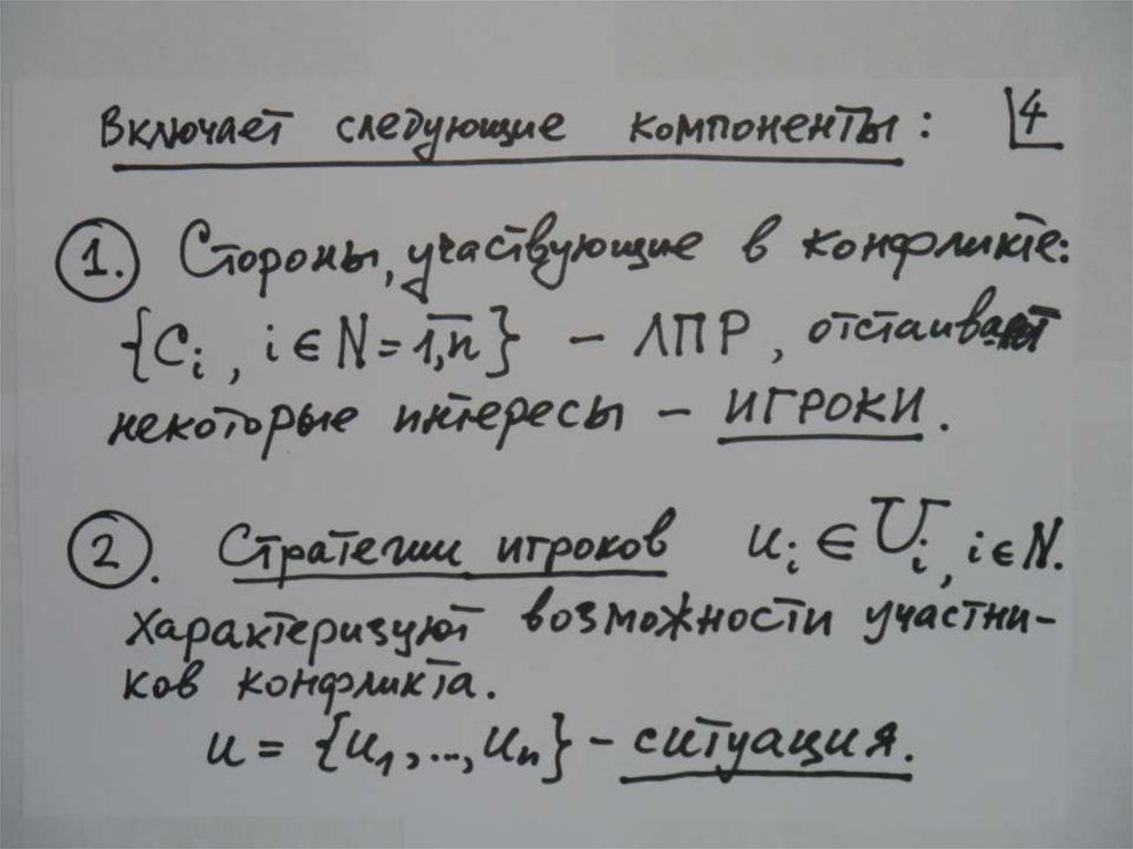1. Стороны, участвующие в конфликте ( ЛПР, отстаивающиенекоторые интересы) – игроки: