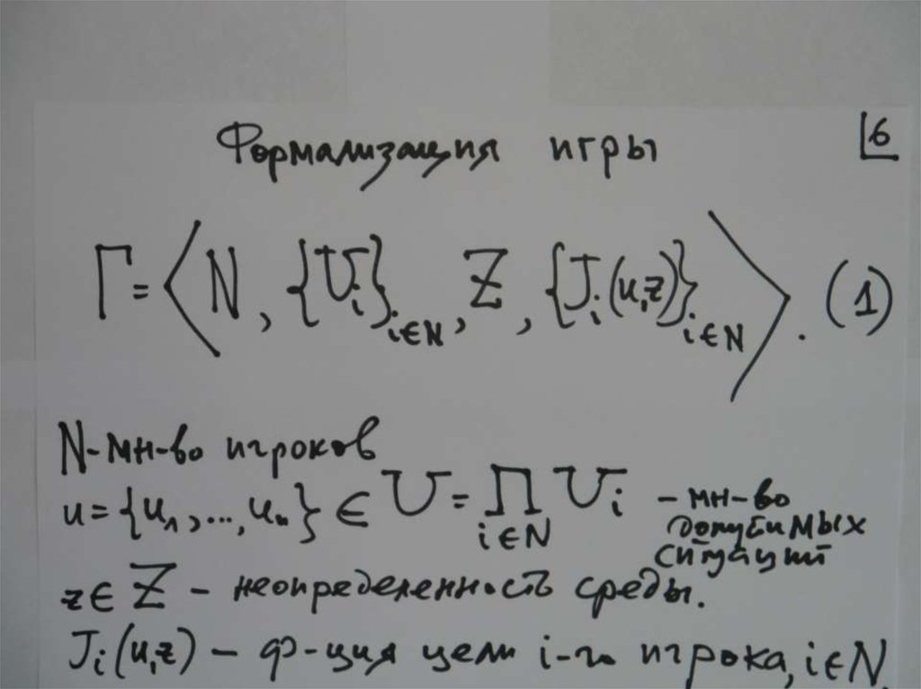 2. Стратегии игроков: ui U i , i N (характеризуют