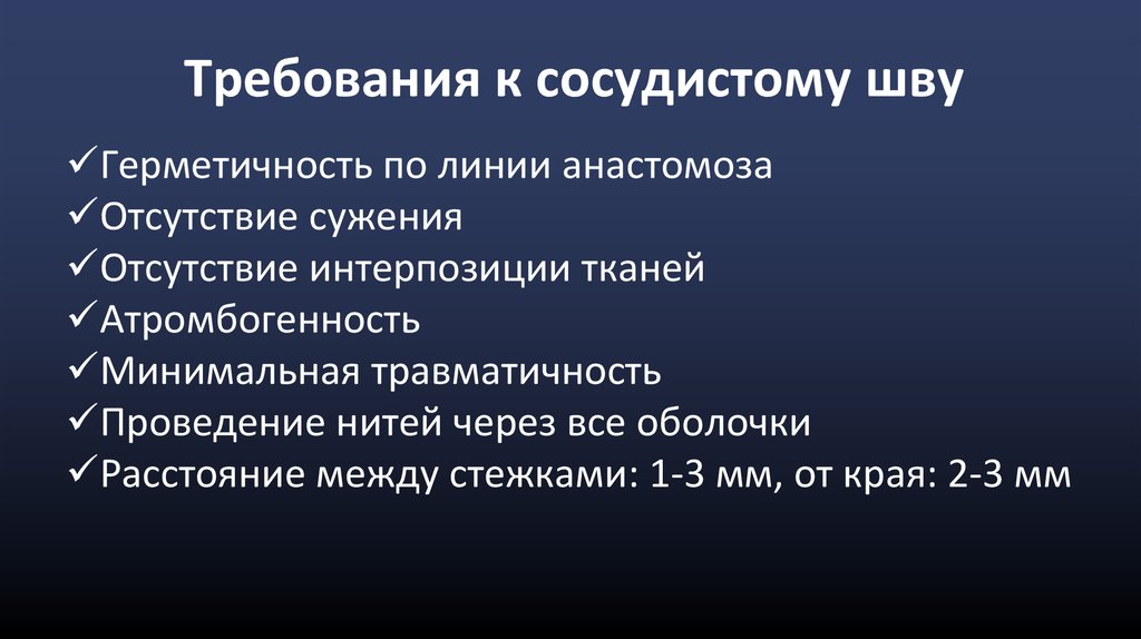 Требования к сосудистому швуГерметичность по линии анастомоза