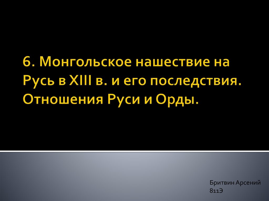 1. 6. Монгольское нашествие на Русь в XIII в. и его последствия. Отношения Руси и Орды.