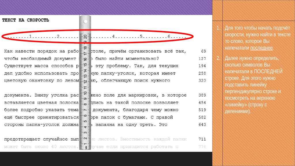 1. Для того чтобы начать подсчётскорости, нужно найти в тексте