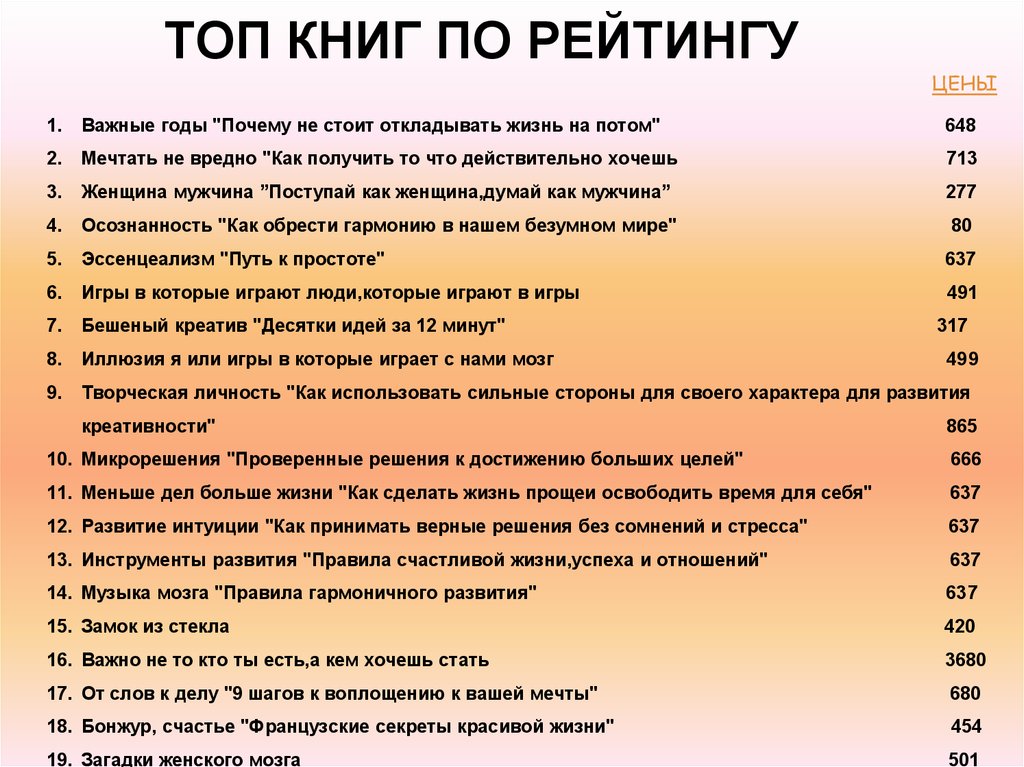 строчки в книжных рейтингах и продажи