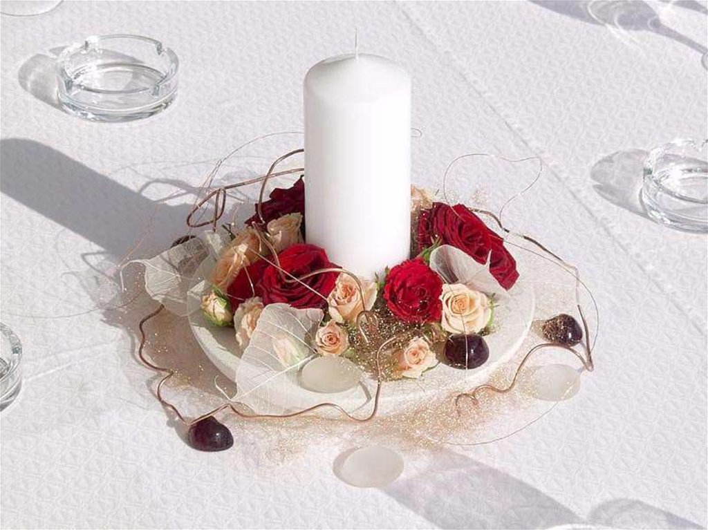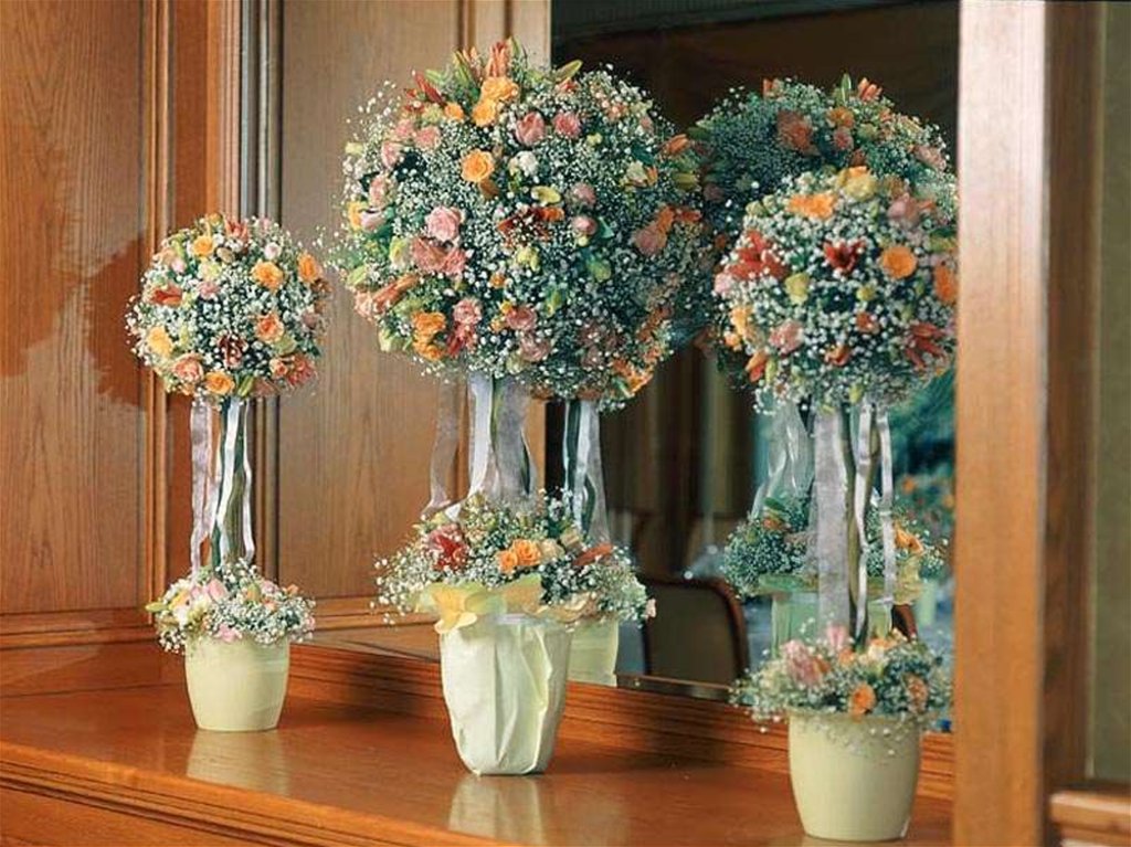 Цветочные композиции из живых цветов с использованием декоративных аксессуаров