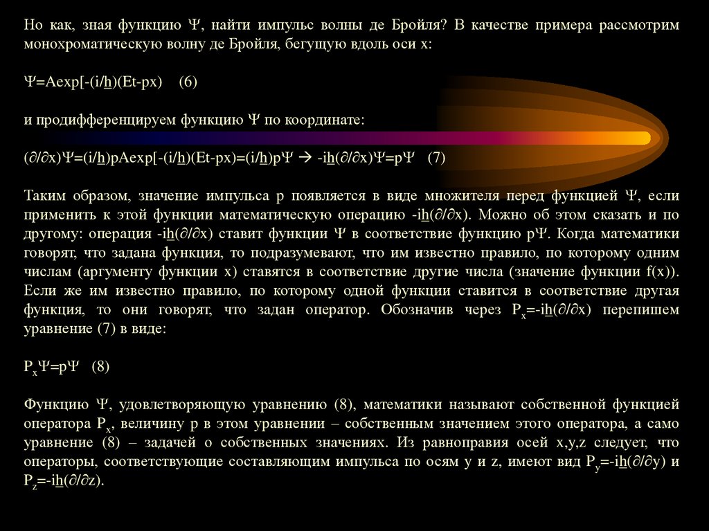 функция, то они говорят, что задан оператор. Обозначив через Px=-ih( / x) перепишем