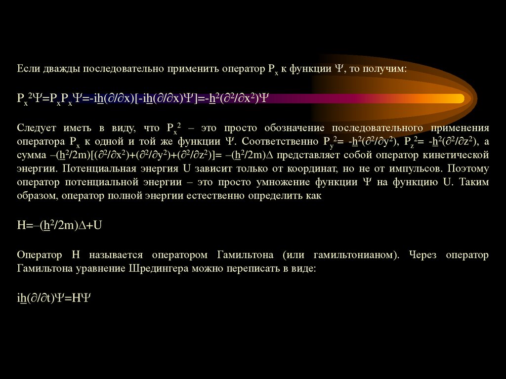 Если дважды последовательно применить оператор Px к функции , то получим:Px2 =PxPx =-ih( / x)[-ih( / x) ]=-h2( 2/ x2)