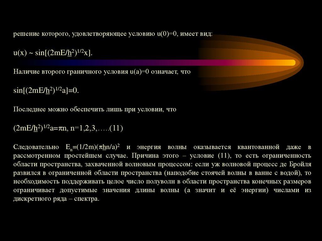 Следовательно En=(1/2m)( hn/a)2 и энергия волны оказывается квантованной даже в
