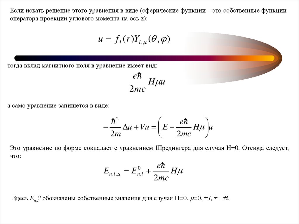Здесь En,l0 обозначены собственные значения для случая H=0. =0, 1, … l.
