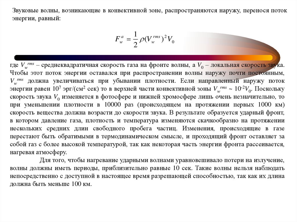 энергии равен 107 эрг/(см2 сек) то в верхней части конвективной зоны Vwrms ~ 10-2V0. Поскольку