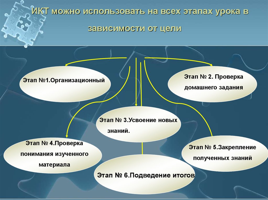 ИКТ можно использовать на всех этапах урока взависимости от цели