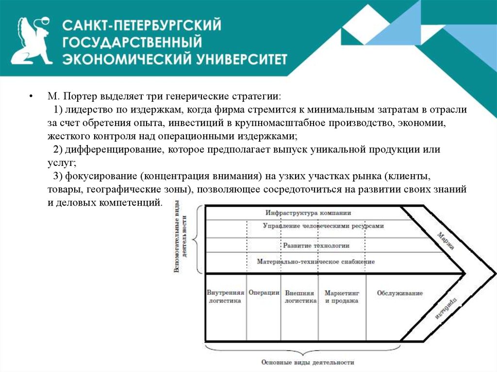 1) лидерство по издержкам, когда фирма стремится к минимальным затратам в отрасли