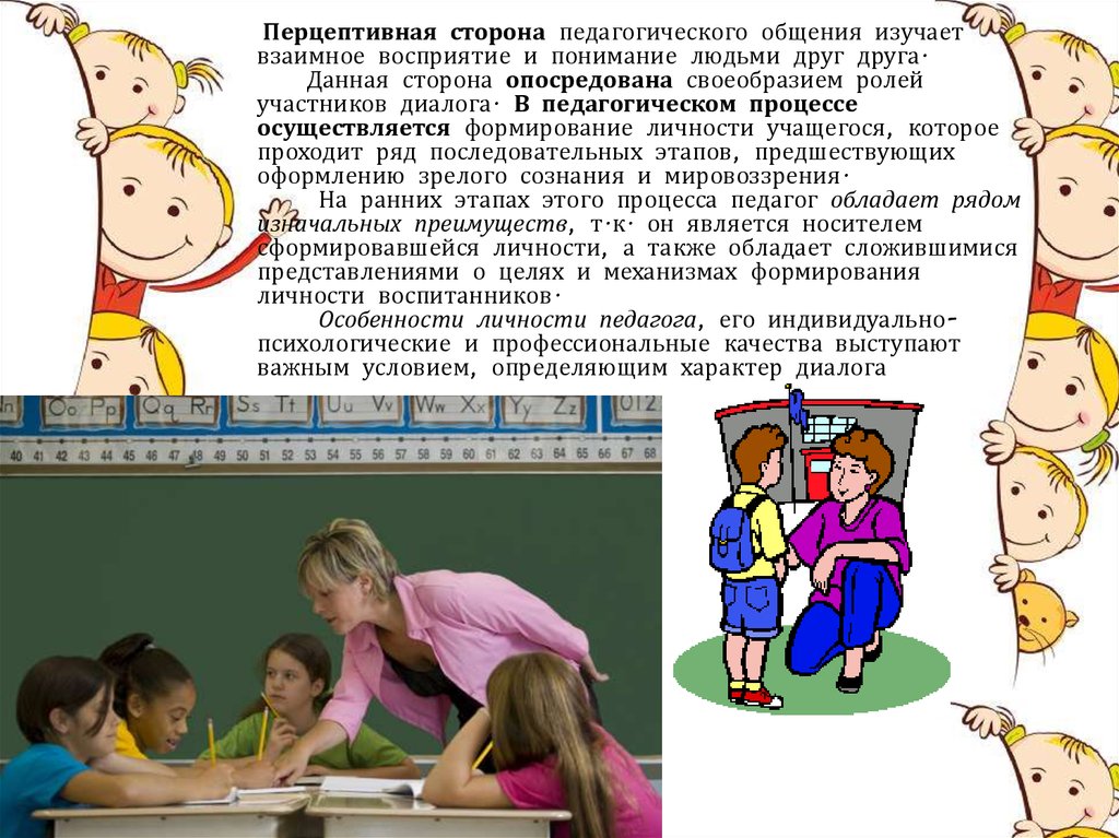 Перцептивная сторона педагогического общения изучаетвзаимное восприятие и понимание людьми друг друга.