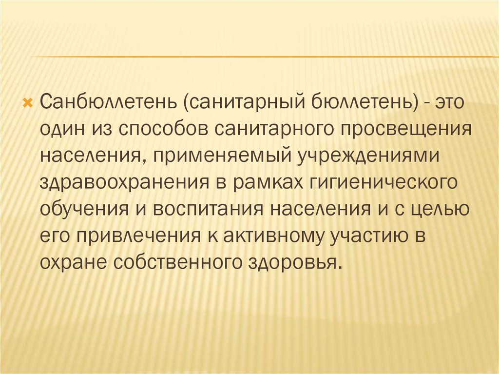 Санбюллетень (санитарный бюллетень) - этоодин из способов санитарного просвещения